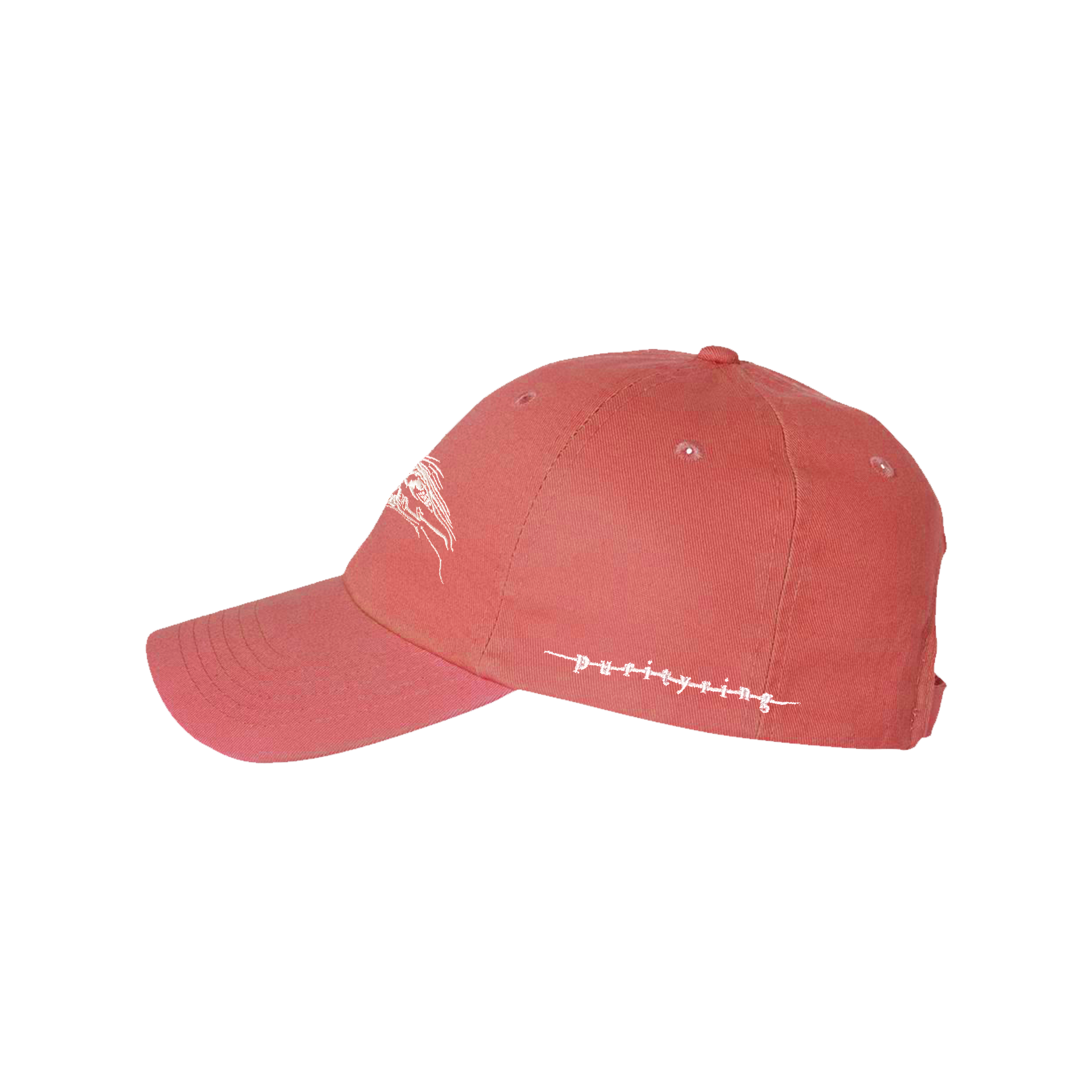 100% washed twill dad hat. Unstructured, six-panel, low profile with buckle closure.